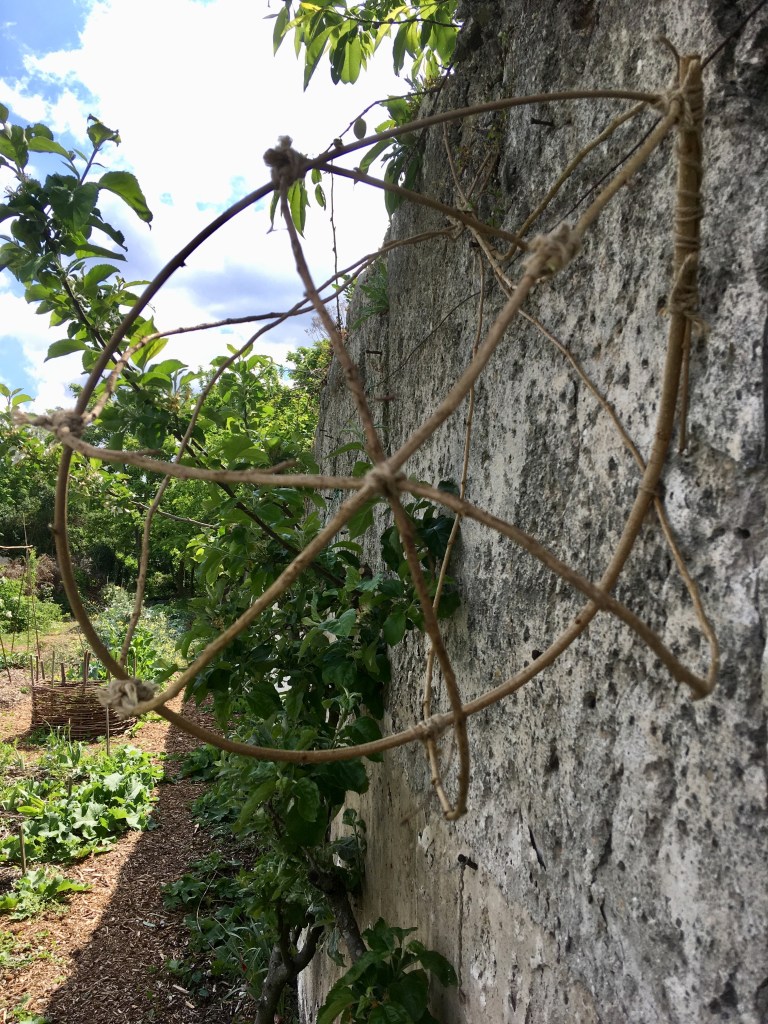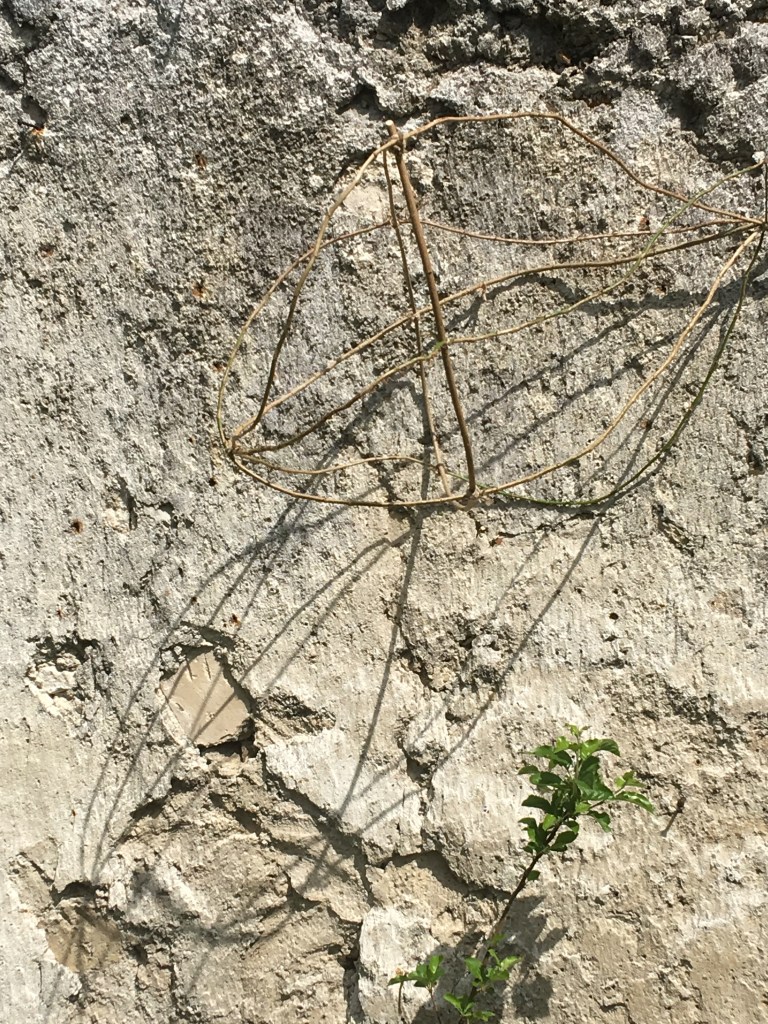 Cette installation s’articule autour d’une quinzaine de sphères végétales irrégulières et déformées. C’est un épanouissement végétal, une manifestation ou une représentation physique de la nature avec une idée de générosité, d’abondance, de luxuriance. Les murs à pêches m’inspirent cette générosité et cette gourmandise.