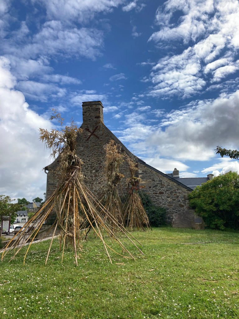 Ce projet s’est déroulé sur plusieurs mois et a été associé à des ateliers de pratiques artistiques auprès de différents publics : des élèves de primaire de l’école François Marie Luzel, un centre de loisir et la médiathèque. J’ai également réalisé une installation monumentale dans l’espace public et une scénographie végétale à la médiathèque. L’installation représente des silhouettes, elle rend hommage aux lavandières de la commune.
