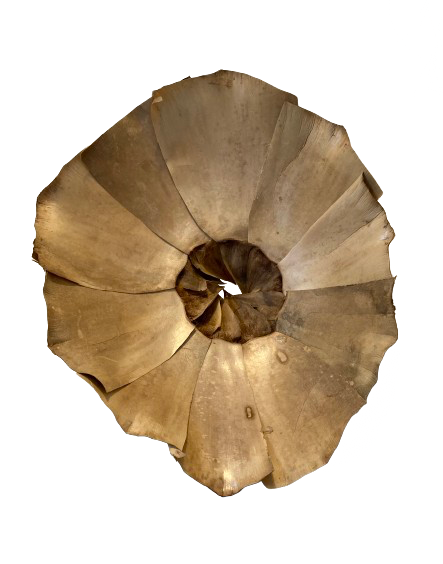 1- Fleur araignée : sculpture en bambou, tous de la même dimension. La technique du nombre d’or m’a inspiré. On le retrouve dans certaines fleurs, végétaux, coquillages … Je me suis laissée guider par les fleurs du jardin.