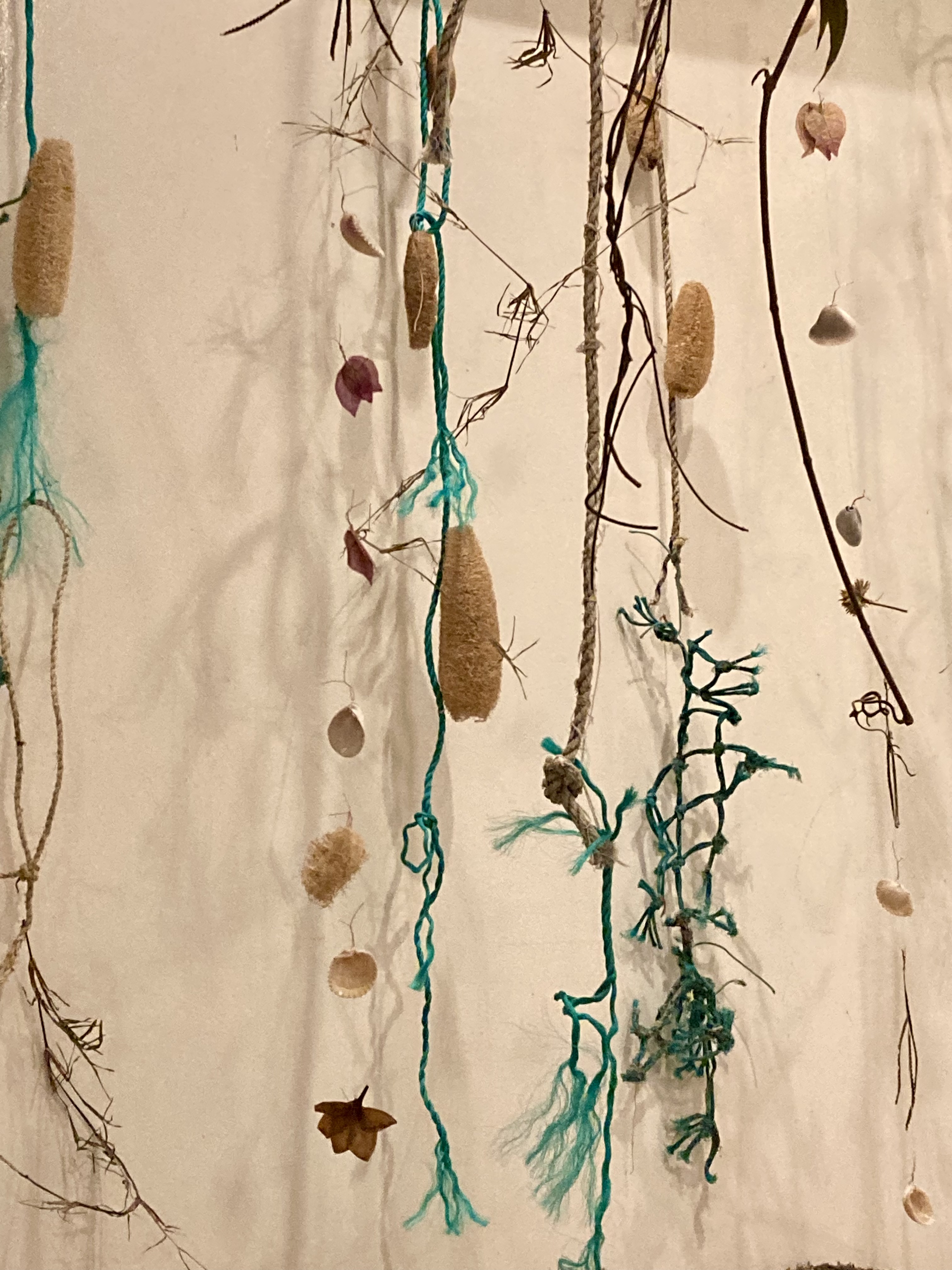 L’idée est d’explorer les végétaux par le lien, la liane et le mouvement, d’inviter à porter le regard sur des curiosités botaniques, de souligner le lien qui nous uni avec le vivant.L’exposition est composée de végétaux et matériaux divers collectés dans le parc de l’Alliance, en brousse et sur la plage (Bambous, lianes, des coquillages, cordages marins (bouts), racines, plantes diverses …)